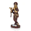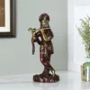 Krishna is a Hindu deity, worshipped across many traditions of Hinduism in a variety of different perspectives. Krishna is recognised as the eighth avatar of the god Vishnu or as the Supreme God in other traditions. Krishna is one of the most widely revered and most popular of all Hindu deities. Krishna is often described and portrayed as an infant eating butter, a young boy playing a flute as in the Bhagavata Purana, a young man along with Radha or as an elder giving direction and guidance as in the Bhagavad Gita.